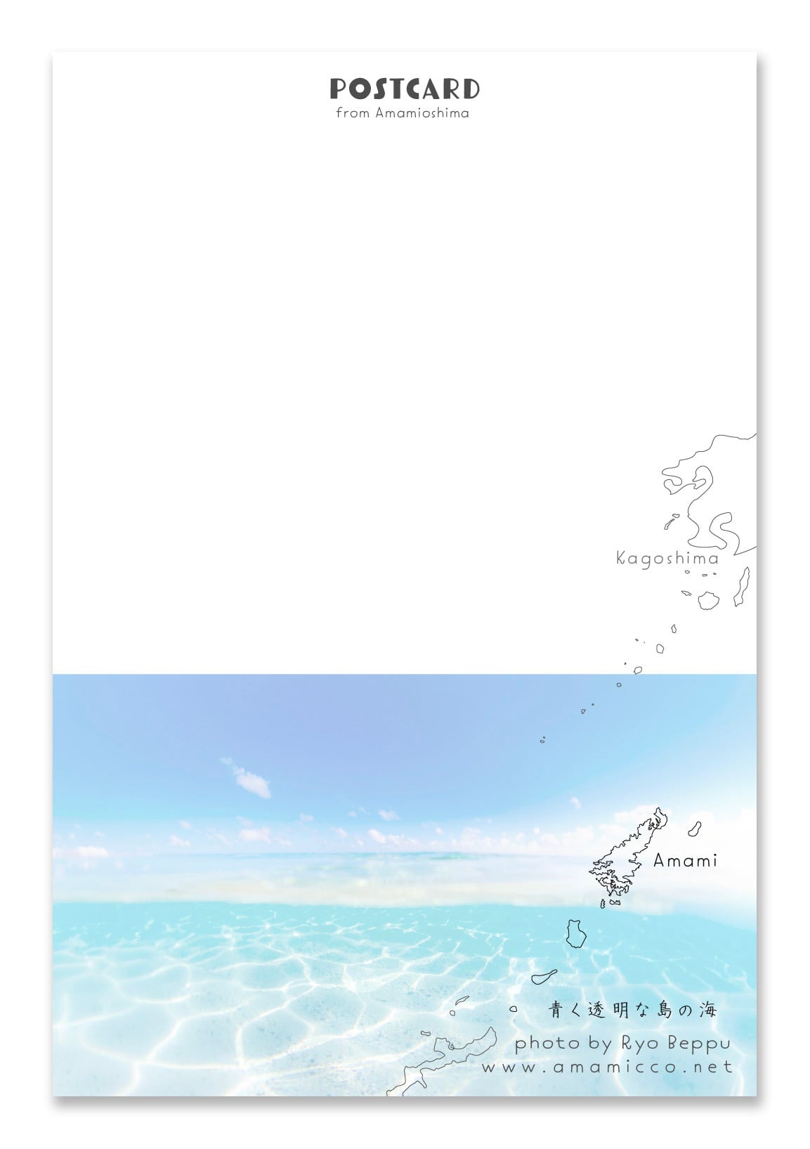 宛名面はキラキラの海と空の半水面写真です。
